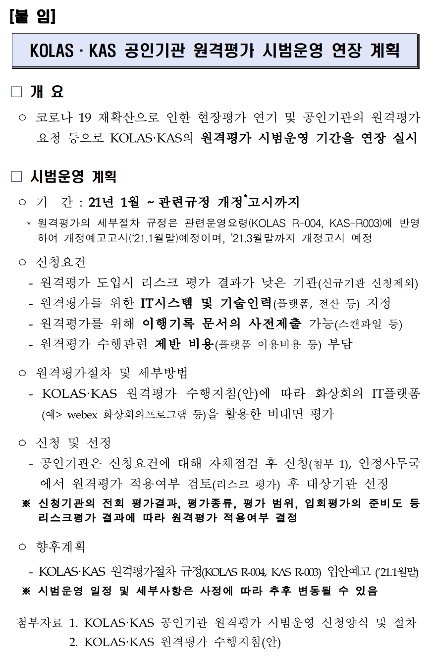 KOLAS 사무국에 문의했더니 아래와 같은 공고자료를 보내줬다.